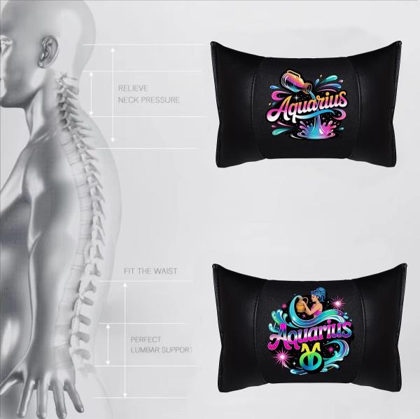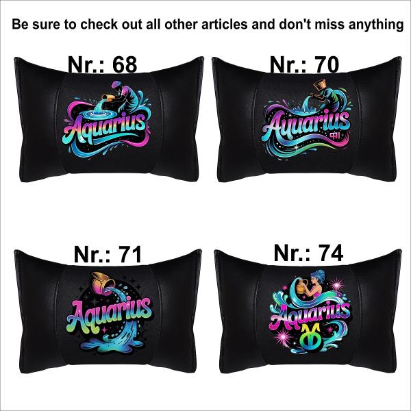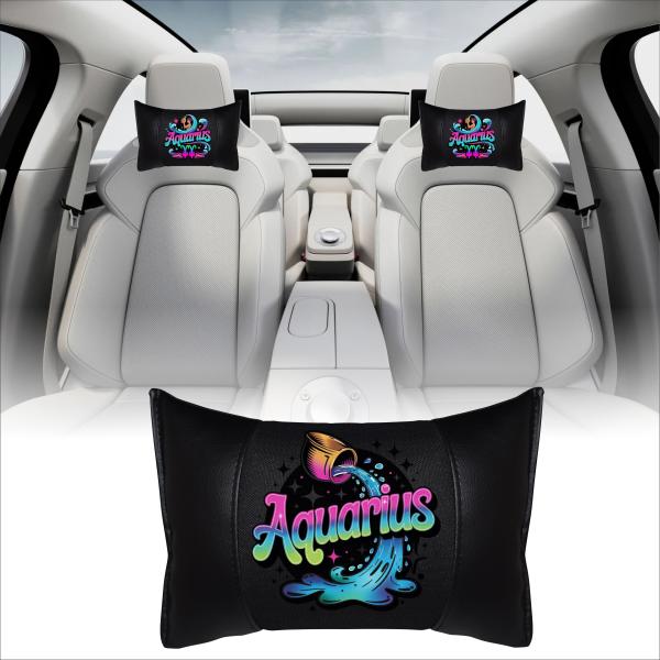 AQUARIUS - 1 Paar Auto Nackenkissen 20x30cm Nackenpolster mit Druck Astrologie ZODIAC STERNZEICHEN HOROSCOPE