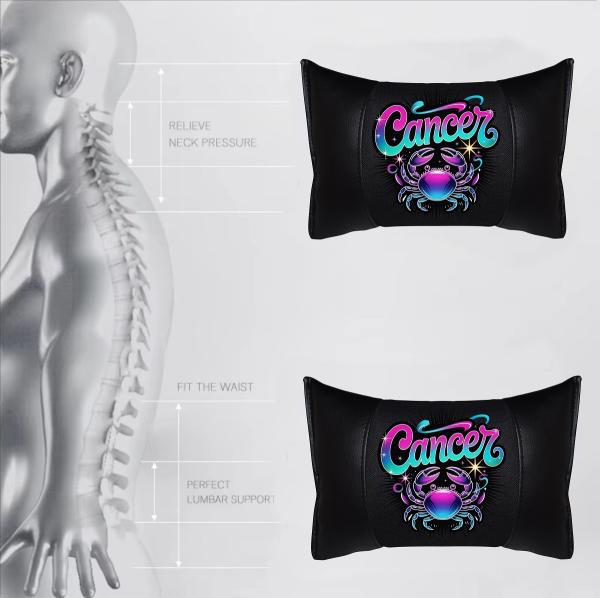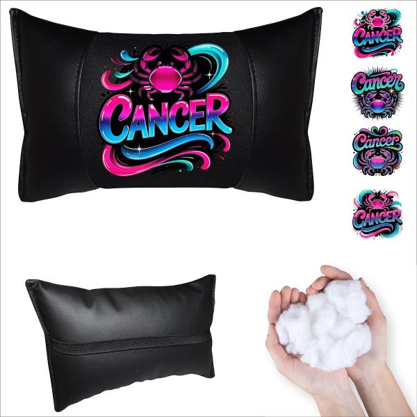 CANCER - 1 Paar Auto Nackenkissen 20x30cm Nackenpolster mit Druck Astrologie ZODIAC STERNZEICHEN HOROSCOPE