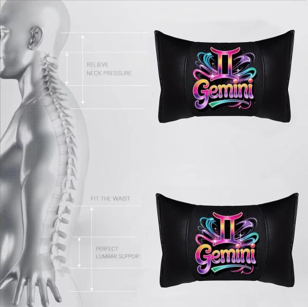 GEMINI - 1 Paar Auto Nackenkissen 20x30cm Nackenpolster mit Druck Astrologie ZODIAC STERNZEICHEN HOROSCOPE