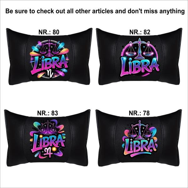 LIBRA - 1 Paar Auto Nackenkissen 20x30cm Nackenpolster mit Druck Astrologie ZODIAC STERNZEICHEN HOROSCOPE
