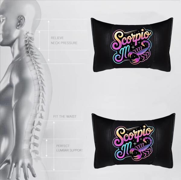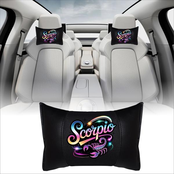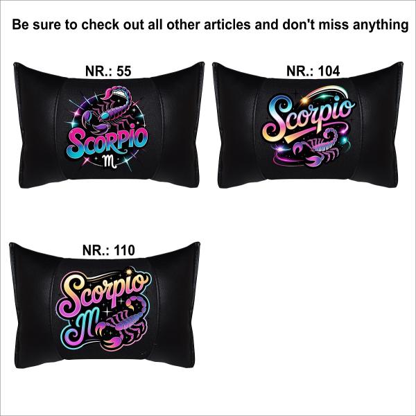 SCORPIO - 1 Paar Auto Nackenkissen 20x30cm Nackenpolster mit Druck Astrologie ZODIAC STERNZEICHEN HOROSCOPE